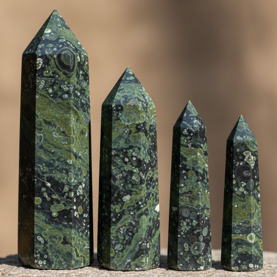 Kambaba Jasper Towers bring depth and natural beauty to any crystal display.