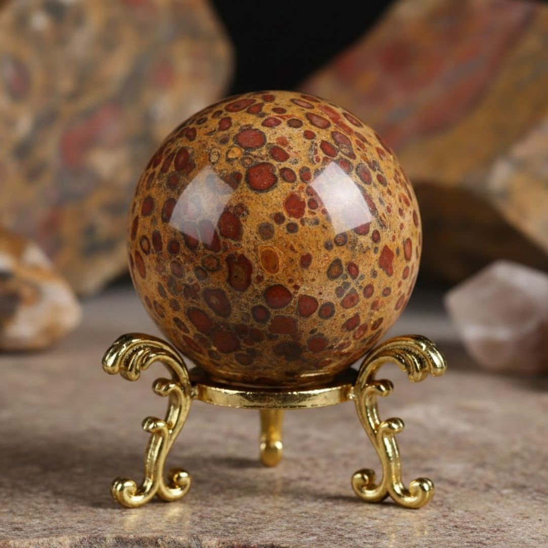 Leopard Skin Jasper Sphere adds bold natural pattern beauty to any crystal display.